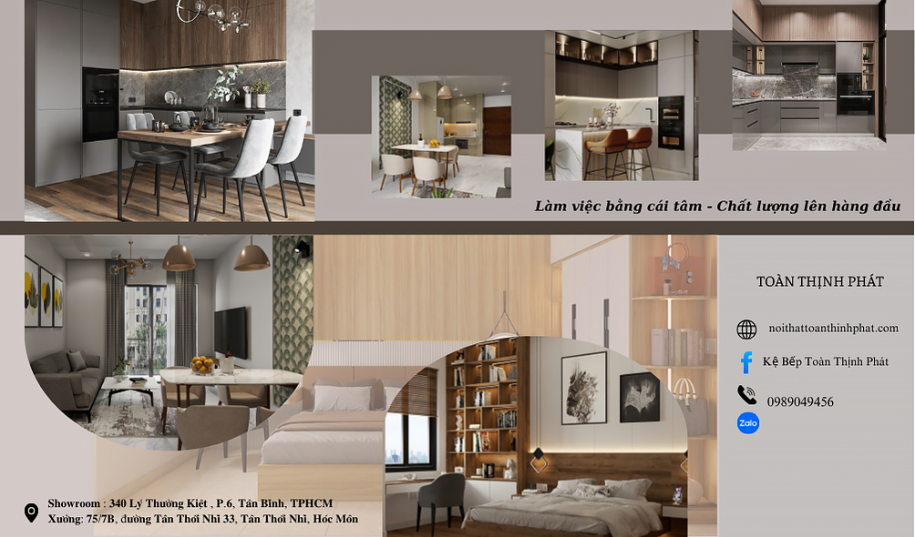 Chi tiếtNội Thất Toàn Thịnh Phát là đơn vị thiết kế, sản xuất và hoàn thiện Nội thất Gia Đình với nhiều năm kinh nghiệm. Quy mô xưởng hơn 1500m2 tại TPHCM. Đội xe giao hàng hùng hậu